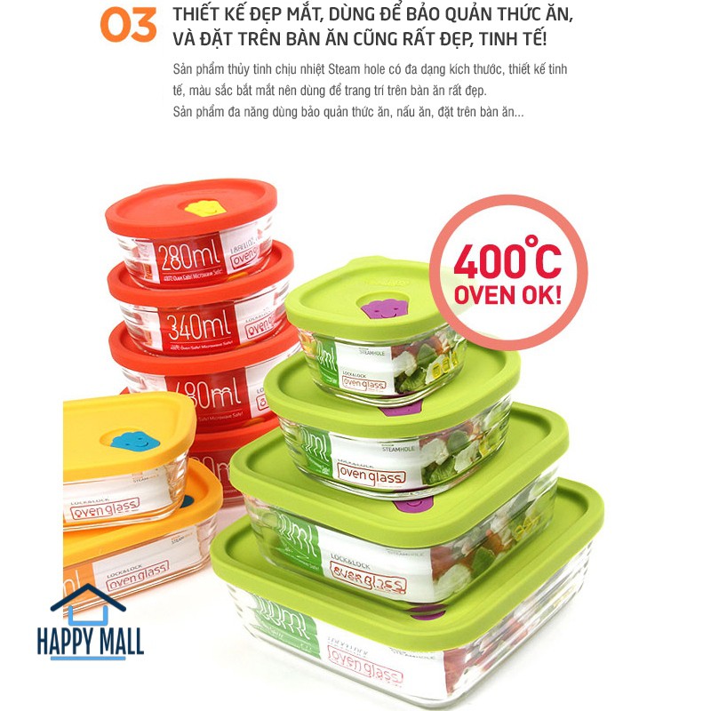 Hộp thủy tinh Lock&Lock Steamhole nắp silicone mềm sử dụng lò vi sóng