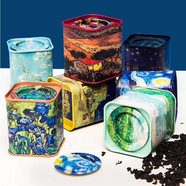 Hộp trà tranh Van Gogh siêu xinh/ Hộp trà/ Hộp hợp kim/ Hộp đựng.