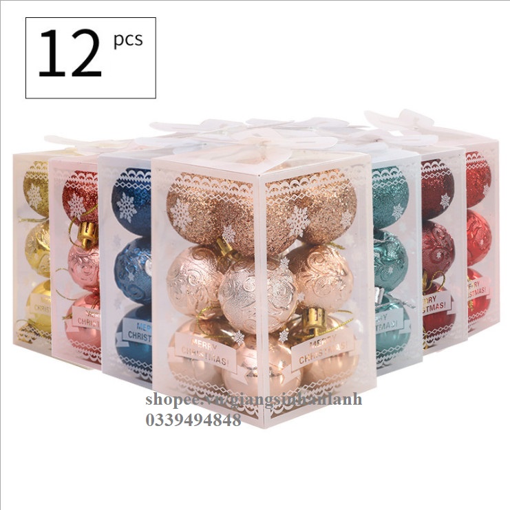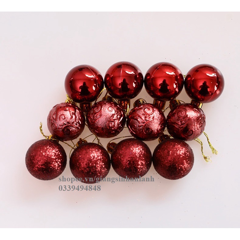 Hộp trái châu tròn đẹp 12 quả 6cm gồm 3 loại châu tiện dụng trang trí cây thông Noel gắn vòng hoa giáng sinh