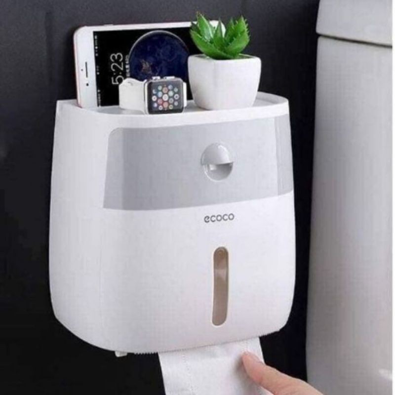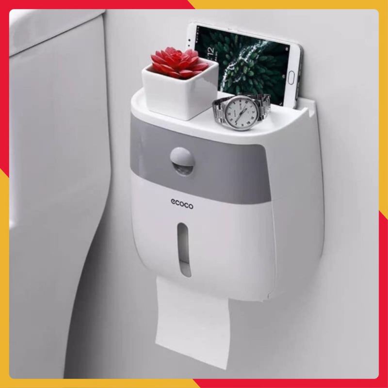 Nhà cửa & Đời sống > Sắp xếp nhà cửa > Hộp khăn giấy || Hộp treo đựng giấy vệ sinh dán tường chống nước có khay để đồ EcocoCòn hàng