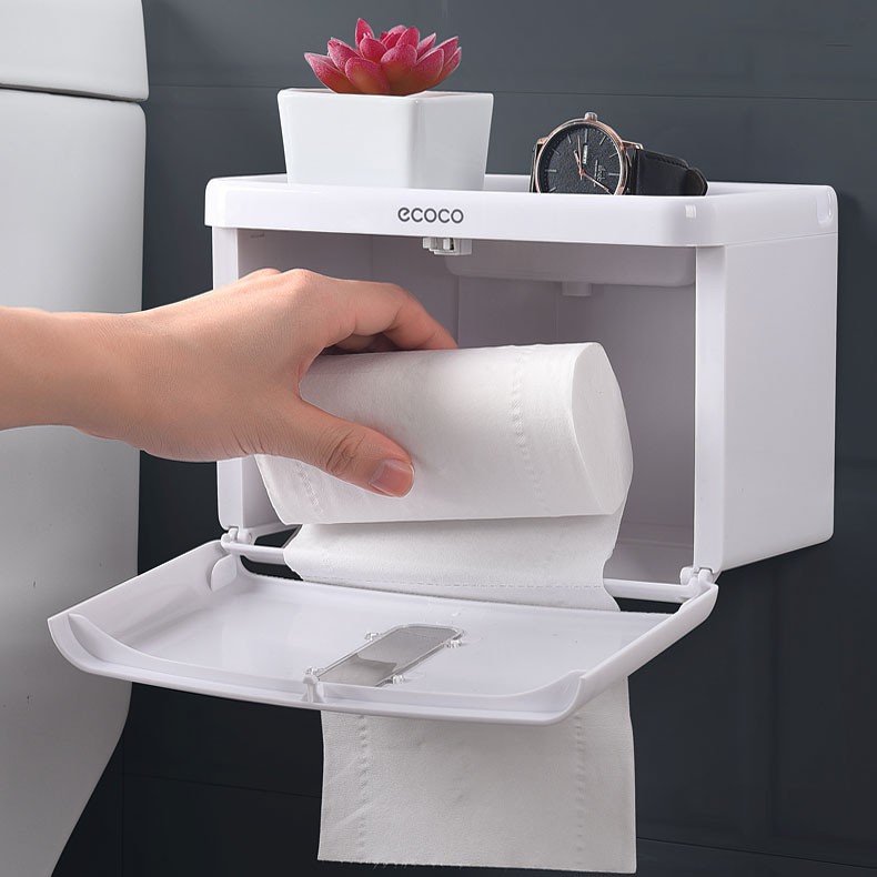 HỘP TREO ĐỰNG GIẤY VỆ SINH DÁN TƯỜNG, CHỐNG NƯỚC, CÓ KHAY ĐỂ ĐỒ, ECOCO1613
