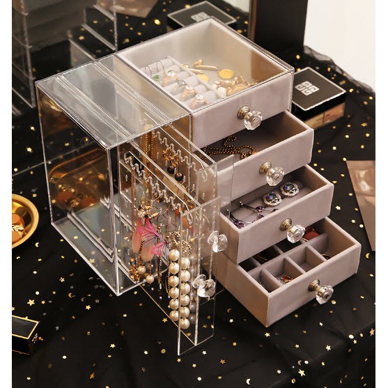 Hộp, Tủ Đựng Khuyên Tai Mica Dày Xịn Cao Cấp, Kèm 2,3 Ngăn Đựng Trang Sức Giá Rẻ