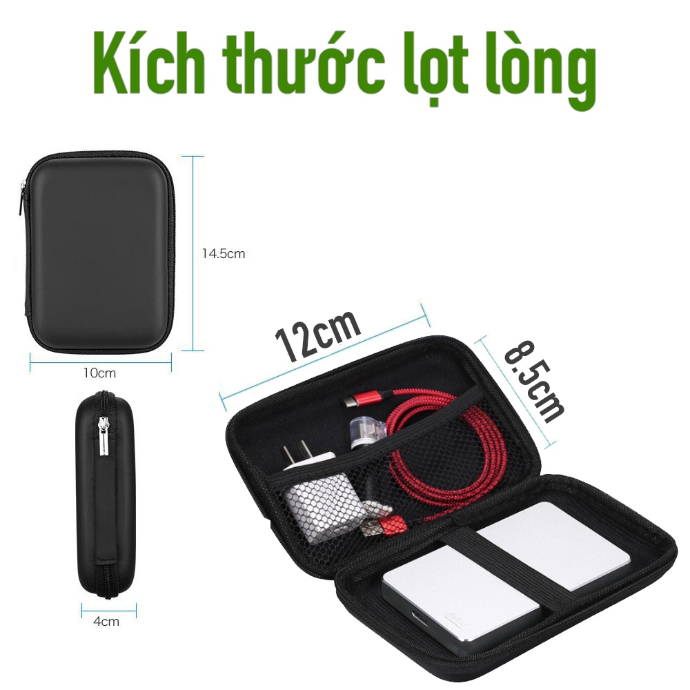 Hộp túi phụ kiện công nghệ khung cứng chống sốc đựng ổ cứng di động, pin sạc dự phòng, bộ sạc, tai nghe với chất liệu chống thấm nước, với khung hộp cứng giúp bảo vệ ổ cứng tốt hơn.