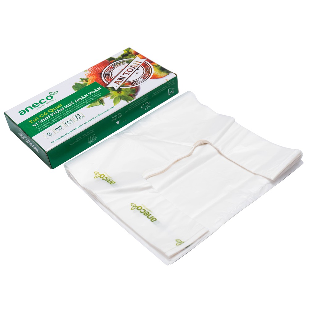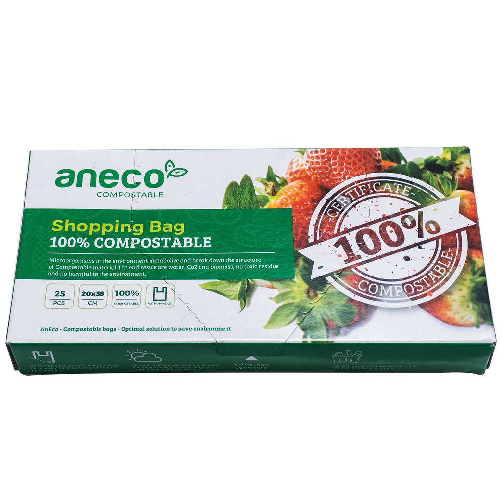 Nhà cửa & Đời sống > Làm vườn > Phân bón || Hộp túi shopping có quai ANECO sinh học phân hủy hoàn toàn (20x38)Còn hàng