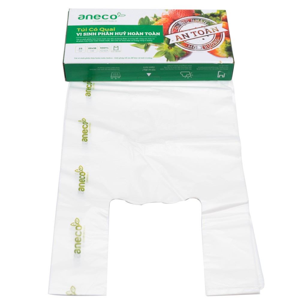 Túi shopping sinh học phân hủy hoàn toàn AnEco đã được kiểm định vệ sinh an toàn thực phẩm. Sản phẩm không chứa bất kỳ chất độc hại nào khi tiếp xúc trực tiếp với thực phẩm có thể gây ảnh hưởng đến sức khỏe người sử dụng.Kích thước: 20x38cm