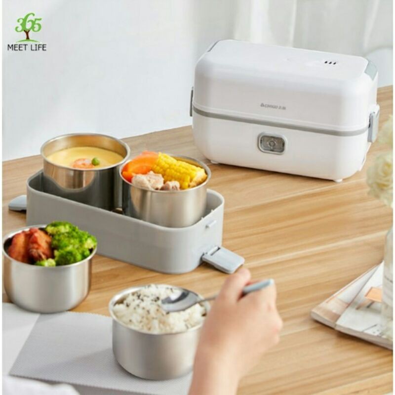 Hộp ủ cơm cắm điện 4 bát gốm sứ, hộp nấu cơm ăn trưa văn phòng life element