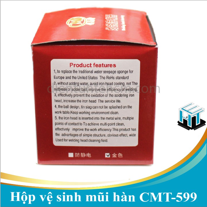 Hộp vệ sinh mũi hàn CMT-599 chất lượng caoSản phẩm dùng để vệ sinh đầu mũi hàn, tăng độ tiếp xúc khi hàn cho mùi hàn. Đảm bảo mũi hàn sạch,