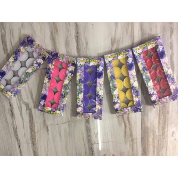 Nến tealigh , nến thơm không khói thích hợp dùng trang trí đam cưới , patty lễ tỏ tình..màu sắc: trắng đỏ, tím, hồng, vàng