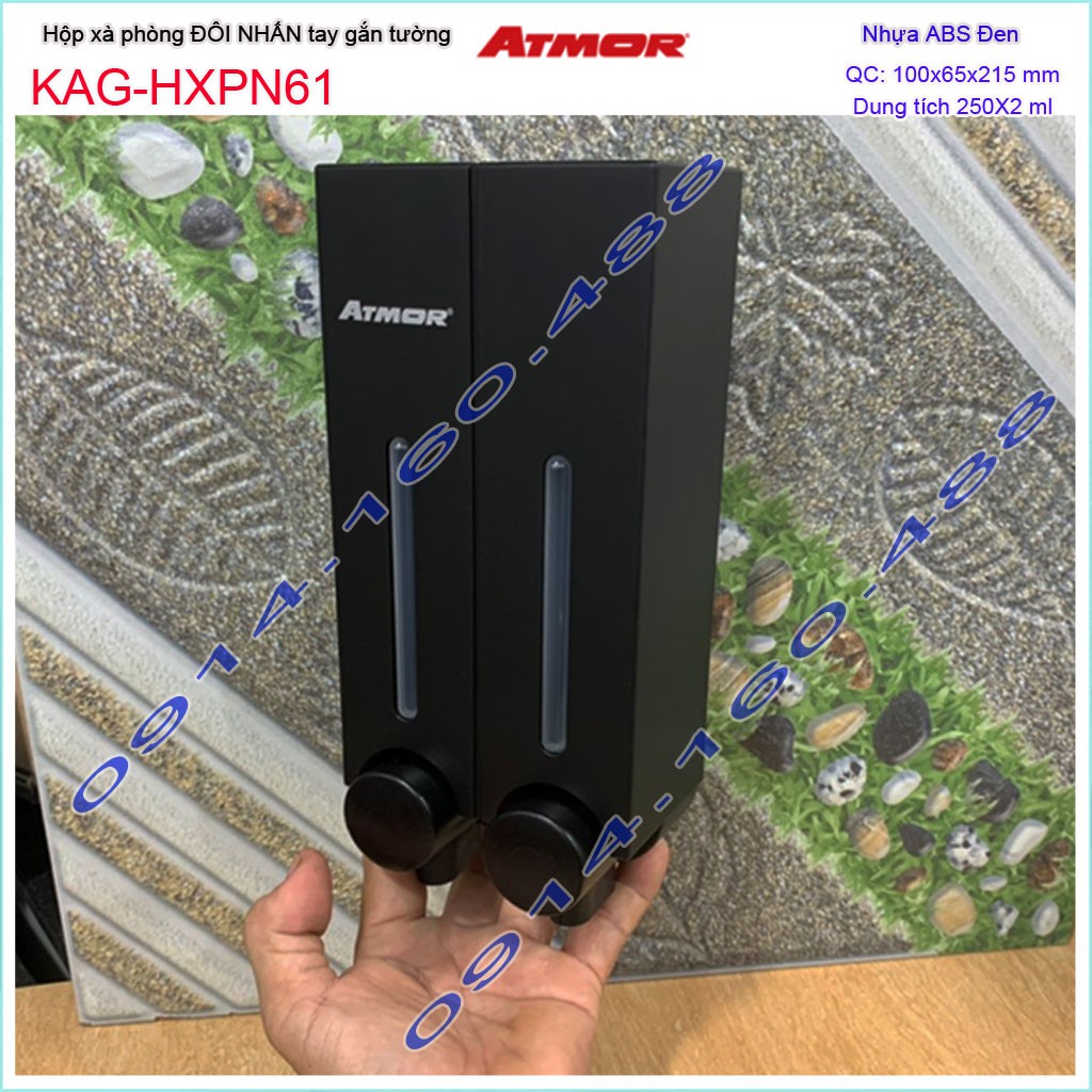 Hộp xà bông nhấn màu đen Atmor KAG-HXPN61-Black , hộp đựng xà phòng đôi 250ml x2 nhấn êm sử dụng tốt