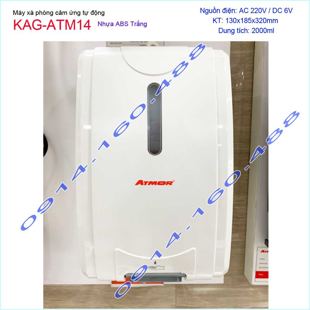Hộp xà phòng cảm ứng Atmor KAG-ATM14, Bình đựng xà bông tự động 2 lít, Máy đựng dung dịch cảm biến 2000mlKích thước Dài 18.5cmx rộng 13cm x cao 32cm. Dung tích bình đựng: 2000ml (2 lít)