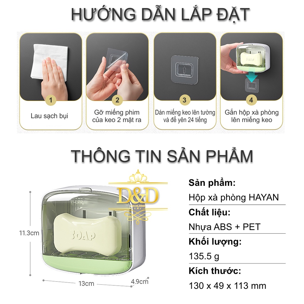 - Hộp đựng xà phòng, xà bông tắm dán tường cao cấp Hayan.