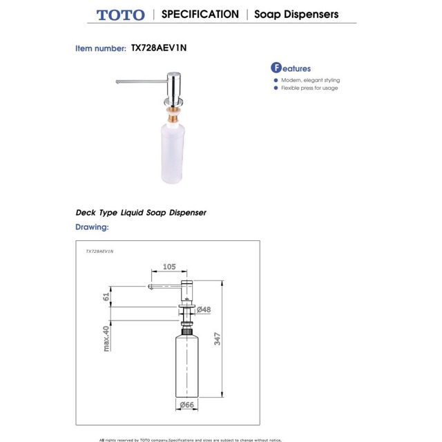 Giới thiệu HỘP XỊT XÀ PHÒNG TOTO (GẮN CHẬU) TX728AEV1N-- hàng chính hãng có phiếu bảo hành