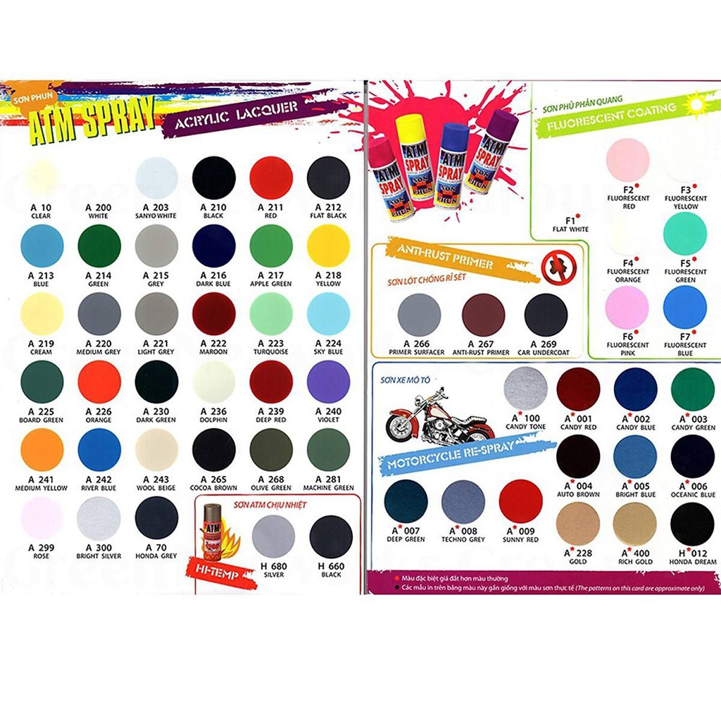 [HOT] #1 Sơn Xịt ATM 400ml Đỏ, Vàng, Trắng, Bạc, Xanh Dương, Đen, Xanh Lá, Khói, Bạc, Hồng, Nâu, Bóng, Lót, Phản Quang