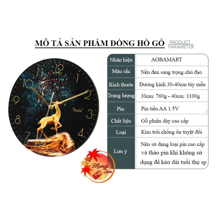 Quy cách: Kích thước 30x30x5cm hoặc 40x40x5cm (Rộng x Cao x Sâu). Mặt đồng hồ có đường kính 30-37cm.