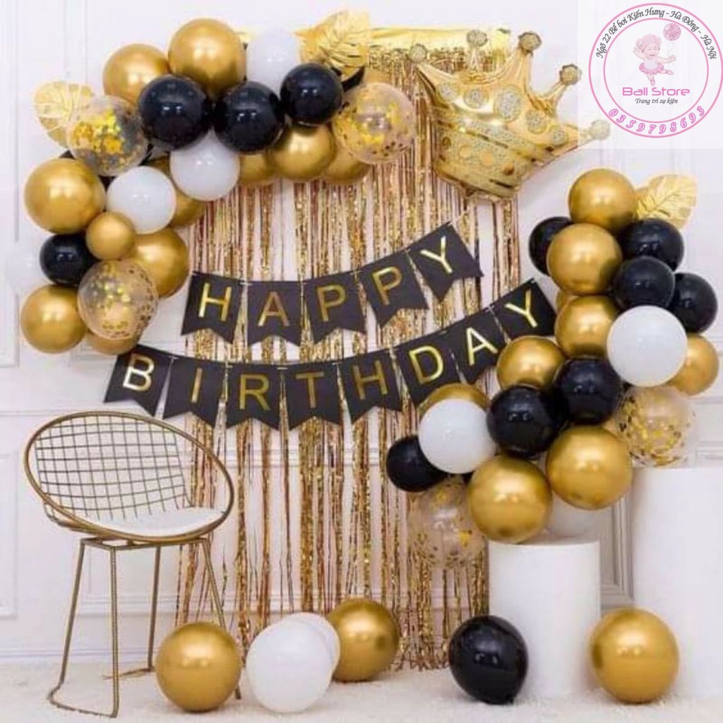 - dây chữ happy birthday giấy đen chữ ép kim vàng