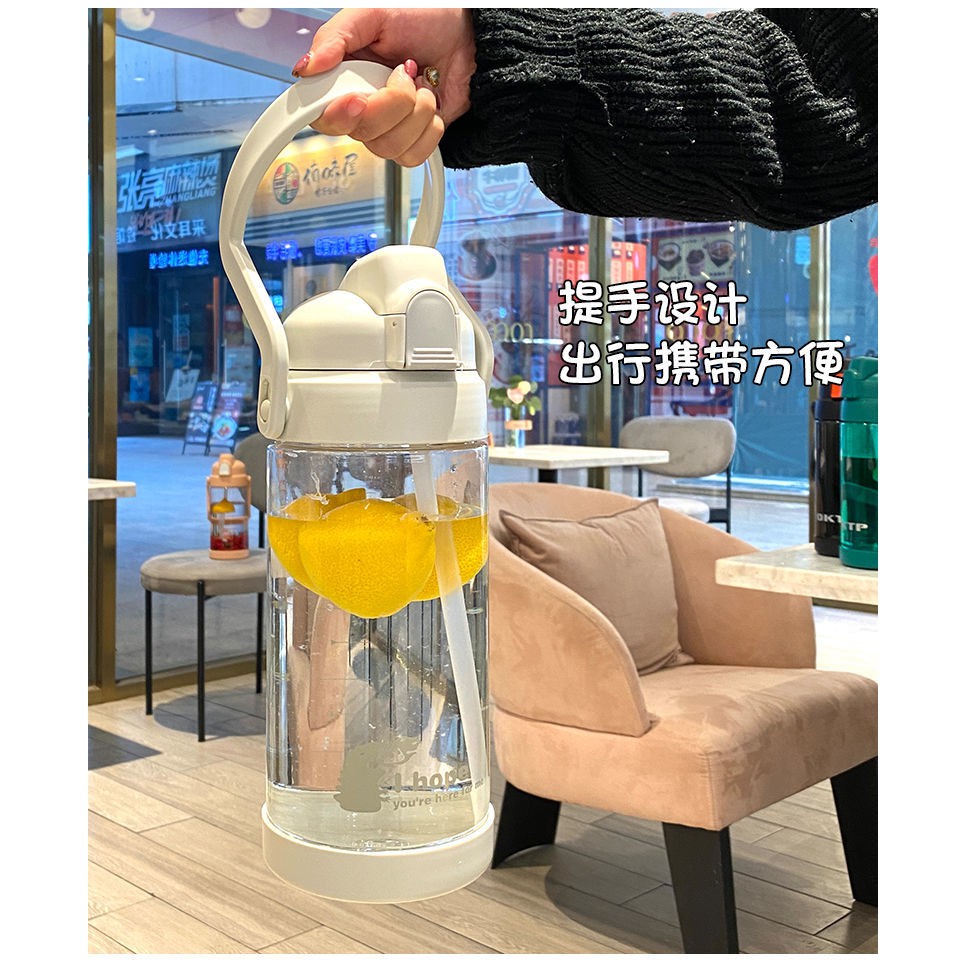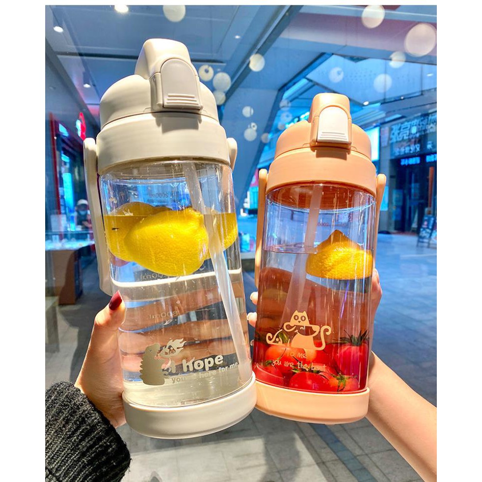 Bình Nước 2 Lít Có Quai Cầm Chắc Chắn, Chai Nhựa Đựng Nước Uống Detox Dung Tích 2000ml, Bình Đựng Nước Siêu ToCốc rơm Dung tích lớn Trái tim Cô gái Quy mô đơn giản Cốc nước Người lớn Sinh viên Thể thao Thể dục Chai nước lớn Di động ngoài trời