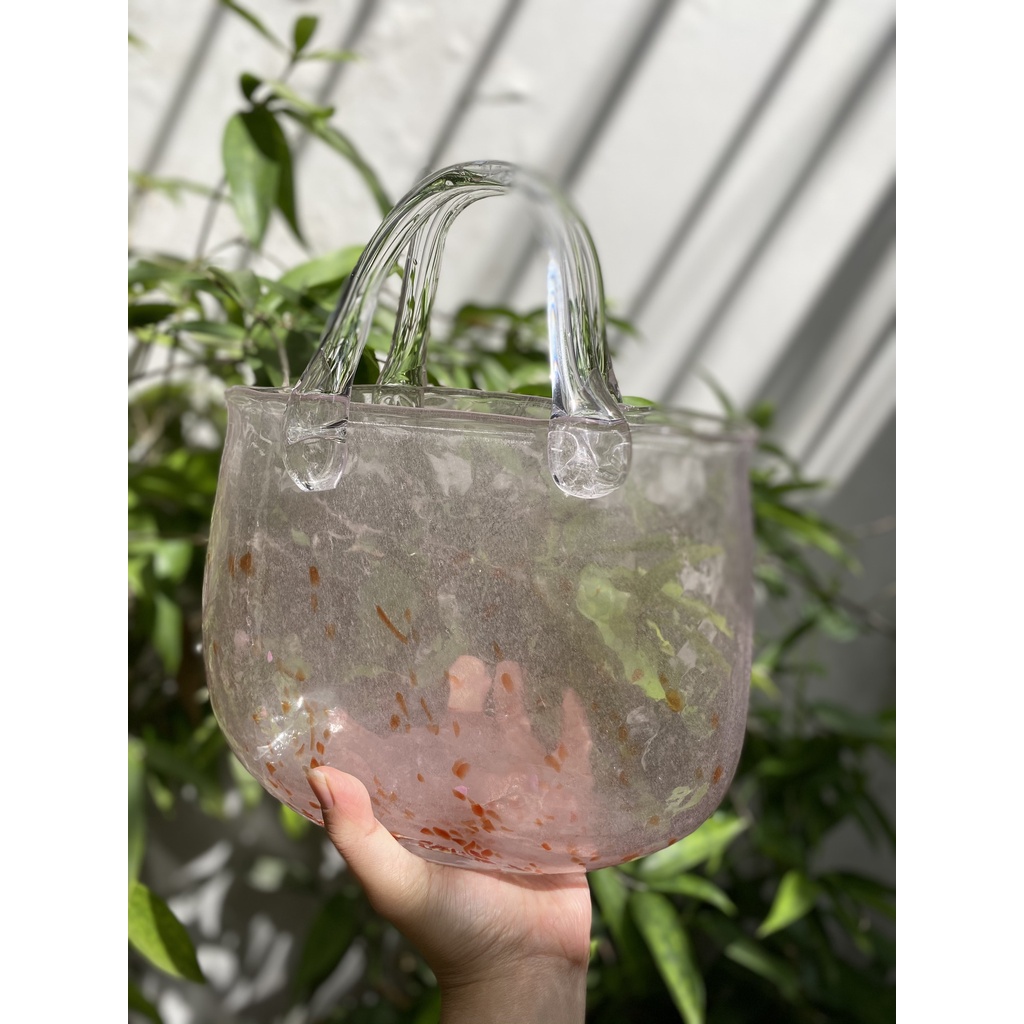 GIỎ HOA THỦY TINH MÀU HỒNG PHẤN CỰC LÃNG MẠNCHẤT LIỆU