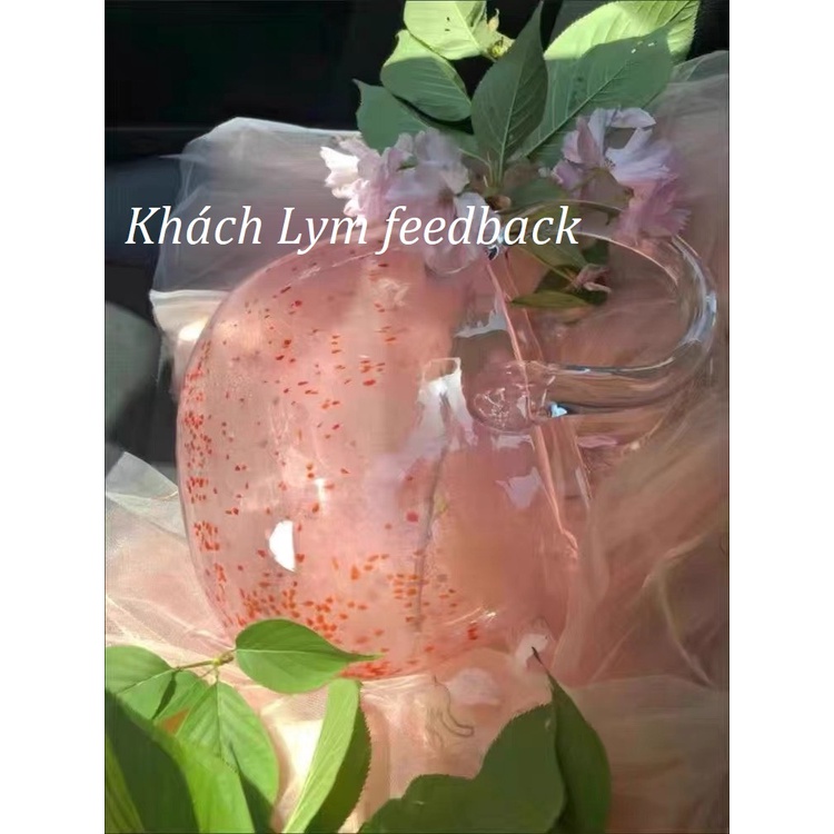 (HOT 2022) Giỏ hoa màu hồng cherry cực lãng mạn, lọ hoa thủy tinh màu cao cấp
