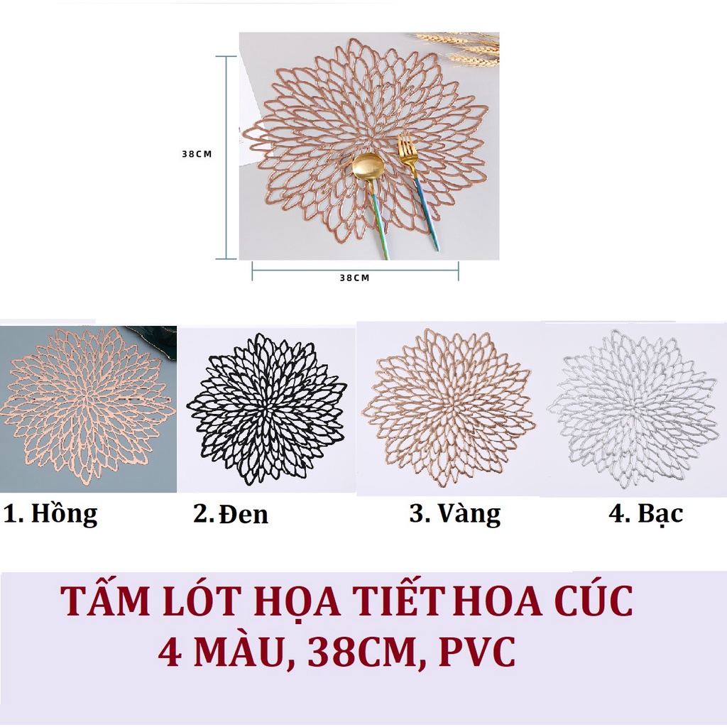 Giới thiệu (HOT 2022) Tấm lót bàn ăn, lót lọ hoa hình bông cúc 4 màu cao cấp PVC p/c Bắc Âu, miếng lót bàn ăn chịu nhiệt chống thấm