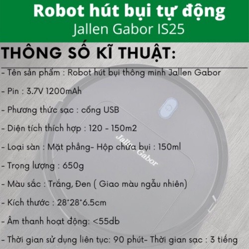 - Tên sản phẩm : Robot hút bụi thông minh Jallen Gabor