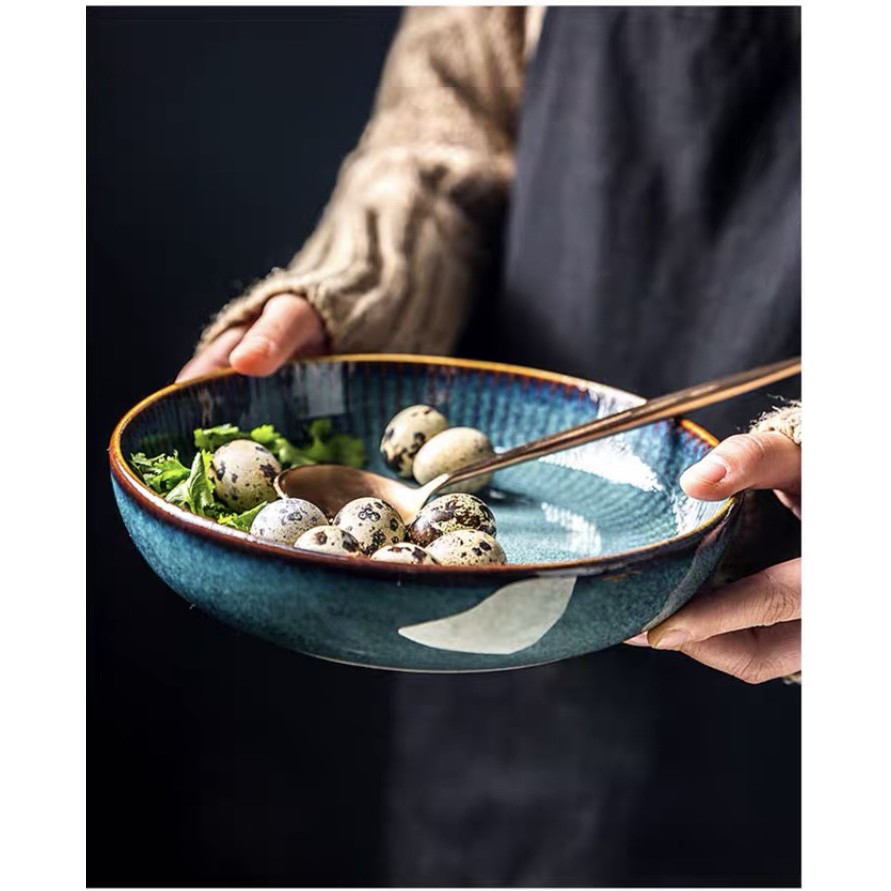 Nhà cửa & Đời sống > Bộ đồ bàn ăn > Tô || (HOT - ẢNH THẬT) Bát tô nông lòng men xanh ngọc Star light - Bát tô sứ cao cấp phong cách Bắc ÂuCòn hàng