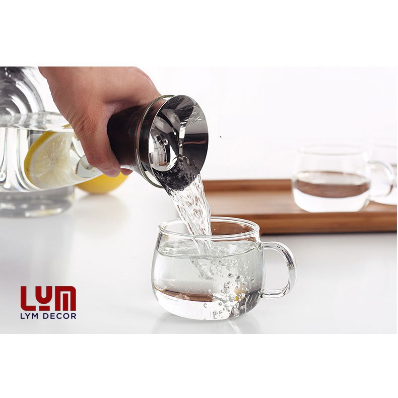 Bình thủy tinh trong vắt, có thể nhìn xuyên thấu, tăng tính thẩm mỹ khi đựng nước trà hoa quả hay nước detox trái cây, tạo sự ngon mắt ngon miệng mà không phải sản phẩm nào cũng có được.