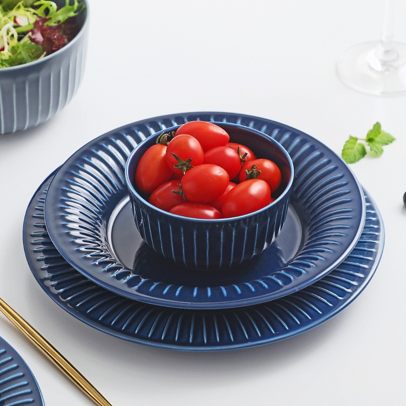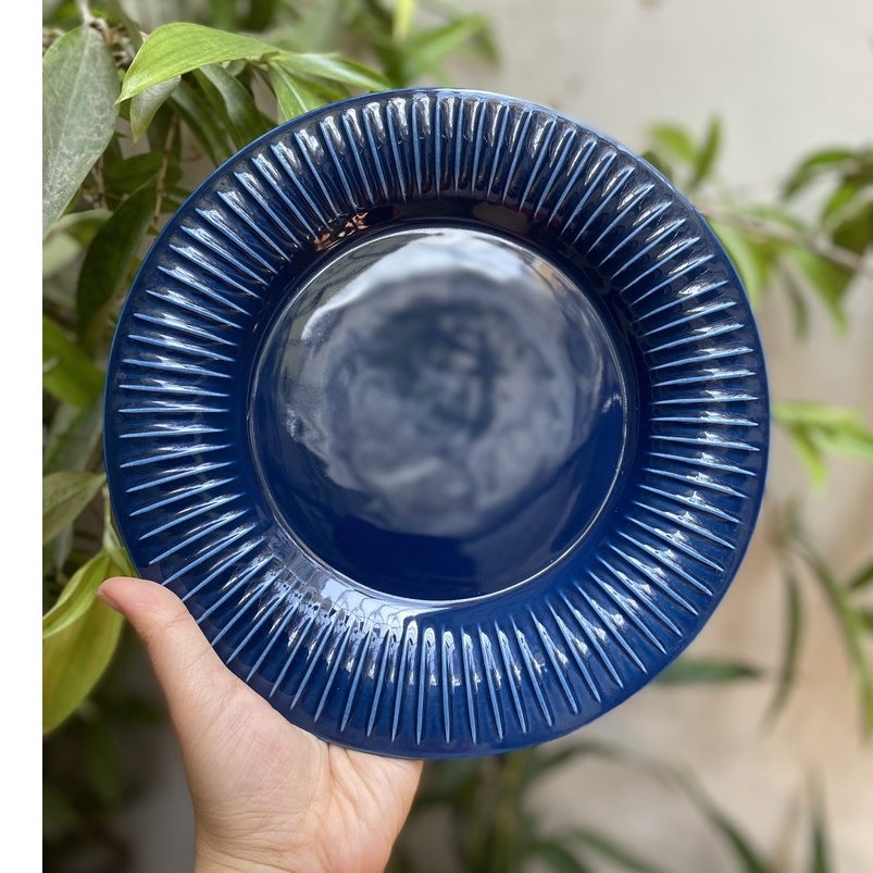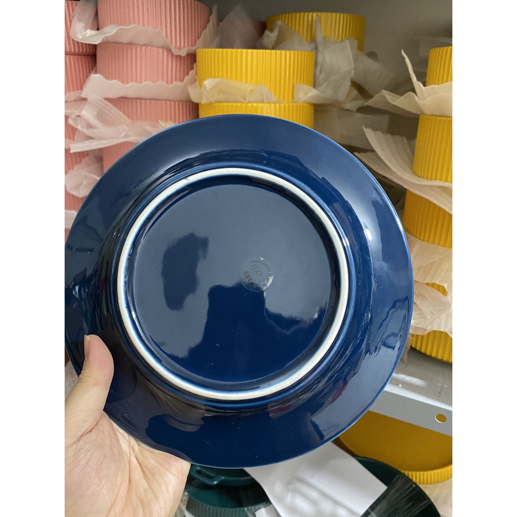 Nhà cửa & Đời sống > Bộ đồ bàn ăn > Dĩa || (HOT - ẢNH THẬT) Đĩa tròn vân sọc hoa cúc Hepburn 2 màu trắng/xanh phong cách Bắc Âu - hàng cao cấp không chì xuất khẩuCòn hàng
