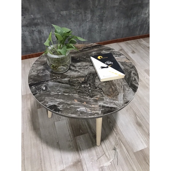 [HOT] Bàn tròn sofa mặt vân đá chân gỗ tự nhiên sang trọng thương hiệu TADA