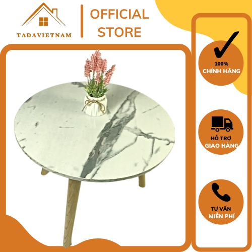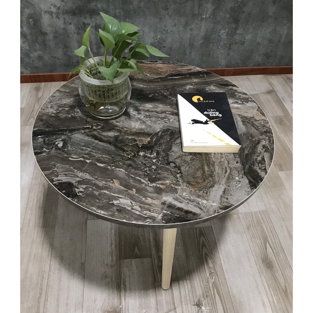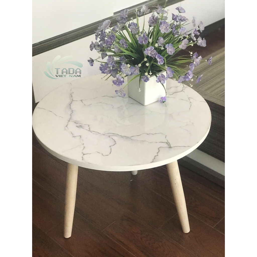 [HOT] Bàn tròn sofa mặt vân đá vân mây chân gỗ tự nhiên sang trọng thương hiệu TADA