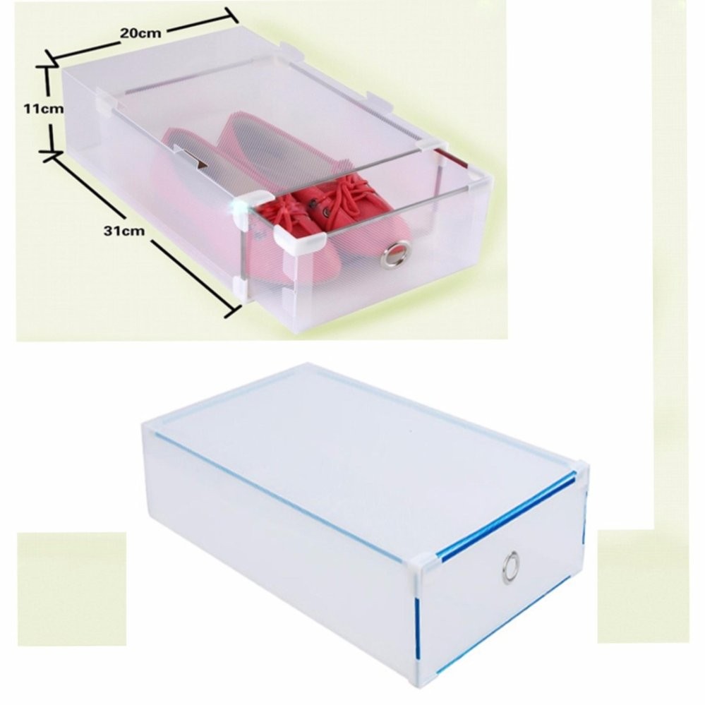 ĐIỂM NỔI BẬT : BỘ 2 HỘP ĐỰNG GIÀY TRONG SUỐT VIỀN KIM LOẠI CAO CẤP - Hộp đựng giầy có ngăn kéo Viền Kim Loại là sản phẩm bảo quản giầy mới và tiện ích nhất hiện nay - Sản phẩm giúp bảo quản giầy trong điều kiện tốt, giữ sạch sẽ và không bị bám bụi. - Hộp đựng giầy được làm từ chất liệu nhựa mềm mang đến cho bạn một phương thức bảo quản giầy mới và tiện ích. - Thiết kế phù hợp để đựng nhiều loại giầy khác nhau. - Có thể xếp chồng nhiều hộp với nhau thành 1 tủ giầy tiện ích hoặc vừa với diện tích từng góc nhà. - Giúp cho không gian trở nên ngăn nắp và gọn gàng - Kích thước: 31*20*11cm - Xuất xứ: Hồng Kông - Chất liệu: NhựaHộp đựng giầy dạng kéo sẽ giúp bạn có thể để giầy dép thoải mái, khay bụi bẩn bám vào.