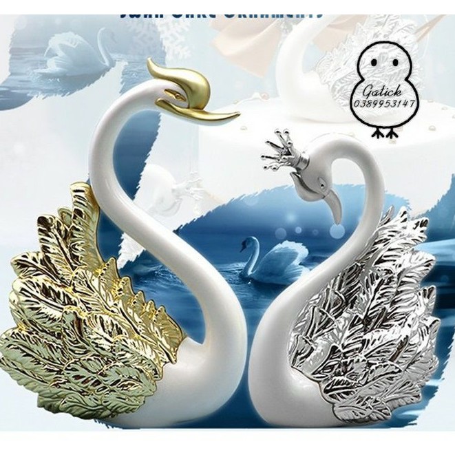 HOT Bộ 2 thiên nga nhũ trang trí bánh kem