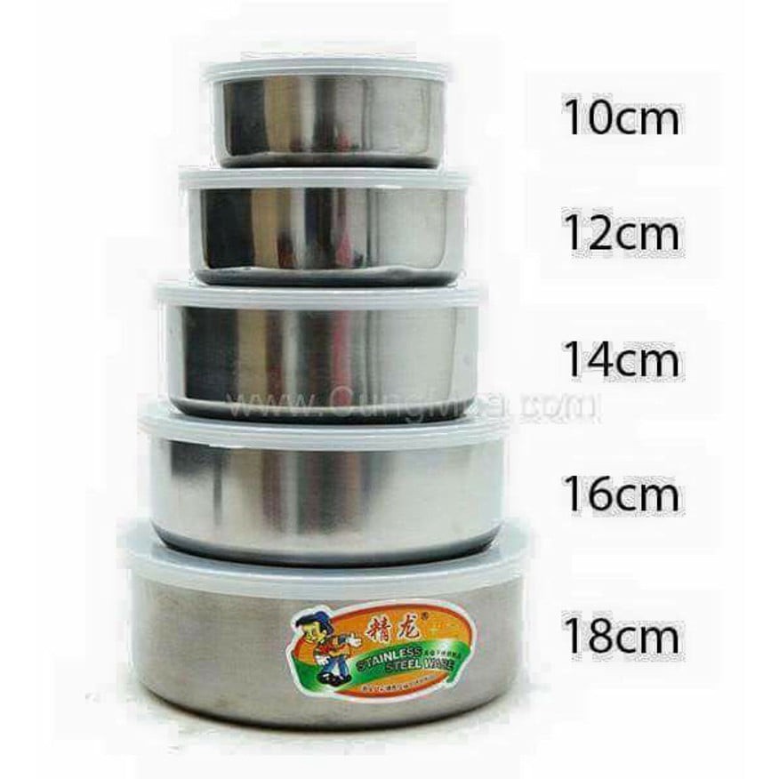- Bộ 5 Thố Inox nhiều kích cỡ tiện dụng bộ 5 hộp inox với 5 kích cỡ: 10, 12, 14, 16, 18 cm cho bạn dễ dàng sử dụng, lựa chọn đơn giản để bảo quản các loại thức ăn khác nhau.