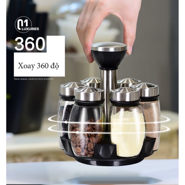 [ HOT ] bộ 6 lọ gia vị xoay 360 thủ tinh cao cấp
