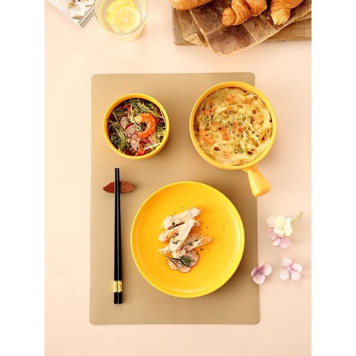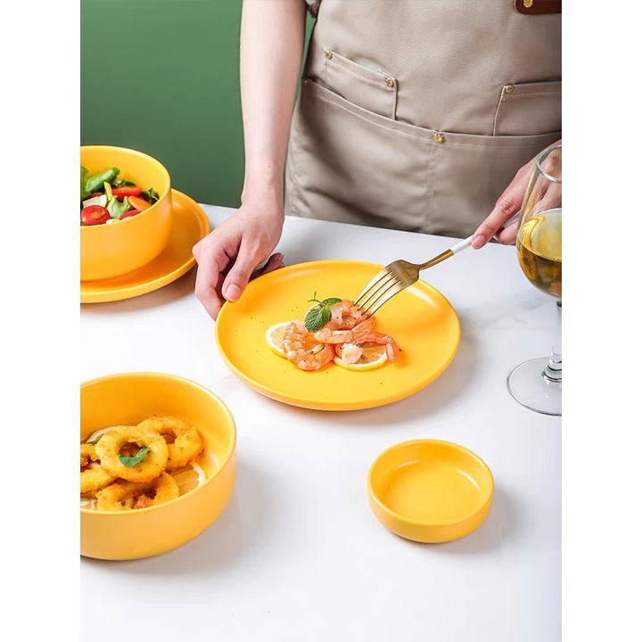 Nhà cửa & Đời sống > Bộ đồ bàn ăn > Dĩa || (HOT) Bộ bát đĩa sứ màu VÀNG PASTEL cực đẹp p/c Bắc Âu - Sứ cao cấp không chìCòn hàng