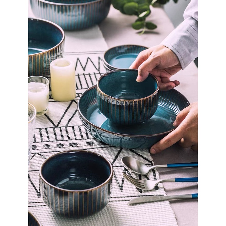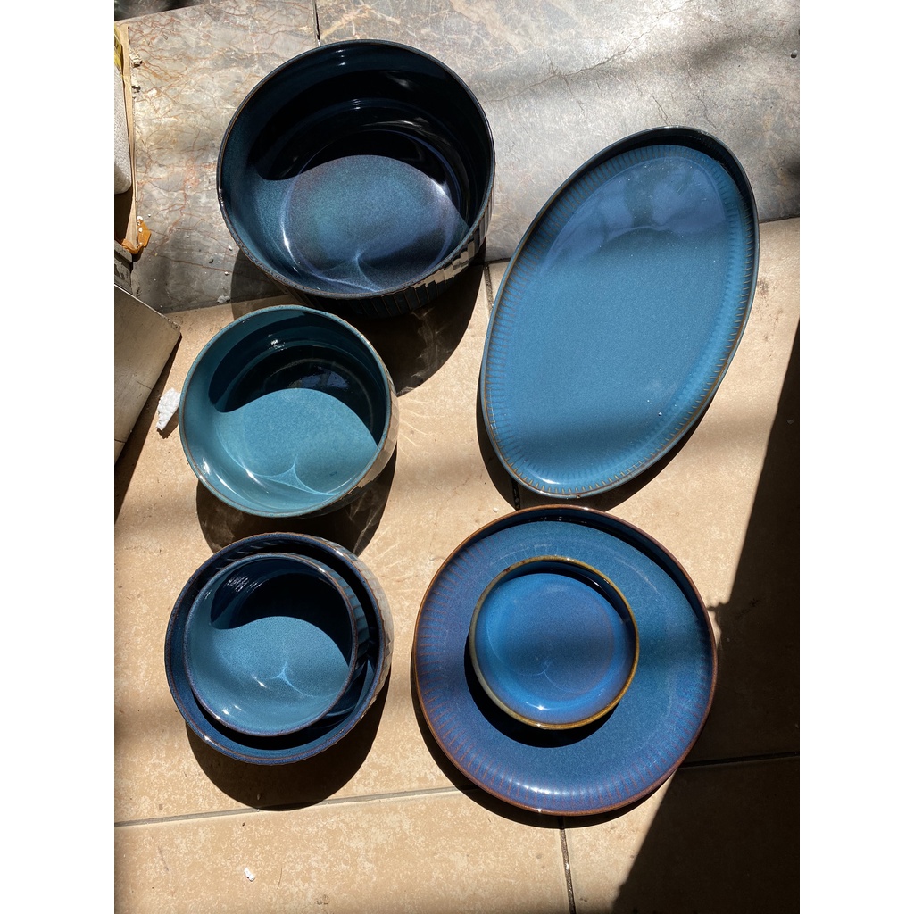 Nhà cửa & Đời sống > Bộ đồ bàn ăn > Dĩa || (HOT) Bộ bát đĩa sứ men xanh Star Light - sứ hỏa biến cao cấp phong cách Bắc ÂuCòn hàng