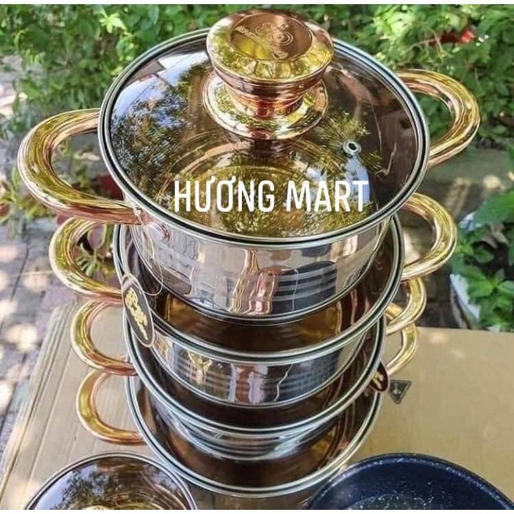 - Bộ nồi tráng men vàng cao cấp sang trọng bảo hành lên tới 5 năm