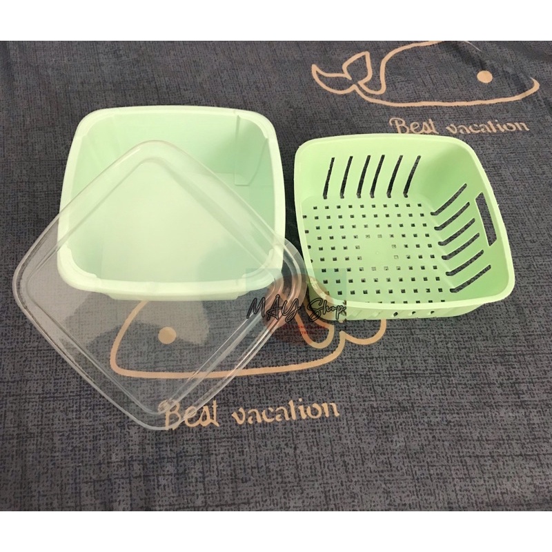 - Công dụng: Có thể dùng để rửa trái cây, rau củ, đựng thức ăn trong tủ lạnh có nắp đậy tiện lợi