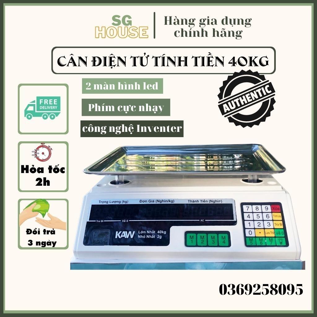 - Cân điện tử tính tiền 40kg có 2 mặt cân trước và sau gồm 3 màn hình LED ( Trọng lượng / Giá bán/ Thành tiền)