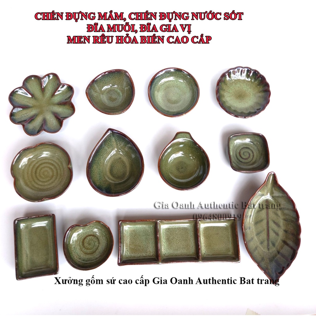 Hiểu được những nhu cầu và thị hiếu của khách hàng, xưởng sản xuất gốm sứ gia oanh authentic bat trang xin giới thiệu các sản phẩm men RÊU hỏa biến cao cấp sang trọng với những chiếc đĩa muối, chén mắm, chén nước sốt nhỏ xinh, cao cấp và sang trọng