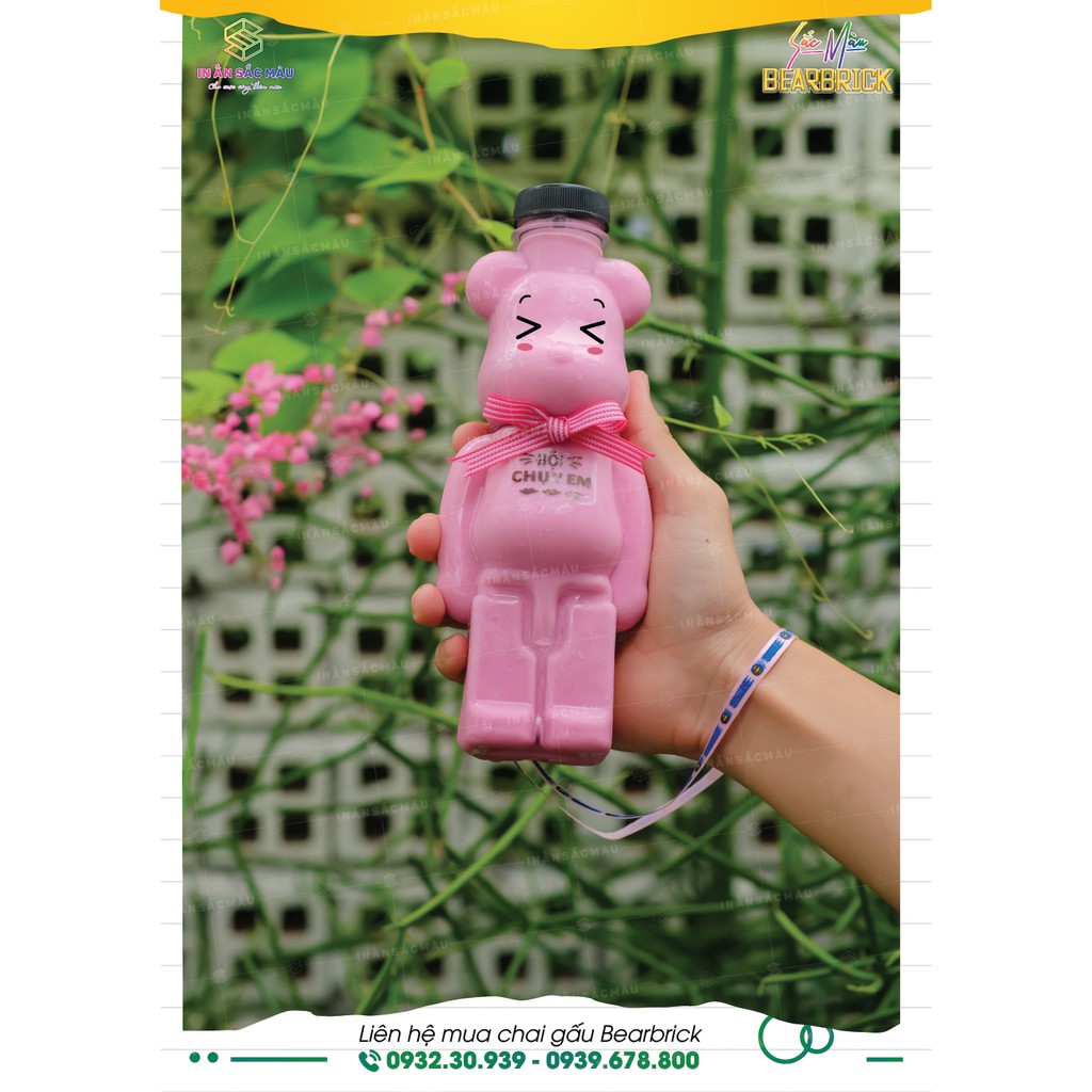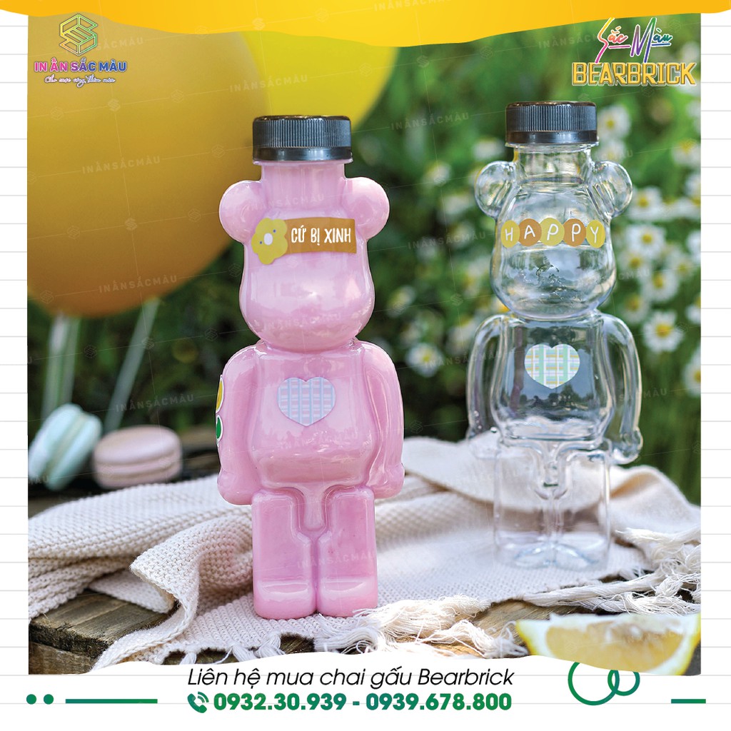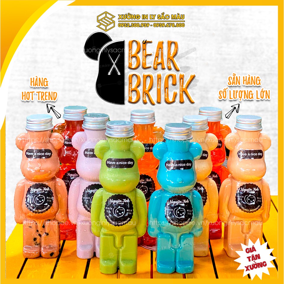 HOT combo 10 bình nhựa, chai nhựa hình Gấu bạo lực Bearbrick✔ Chất liệu: Bình nhựa PET, nắp nhựa hoặc nhôm