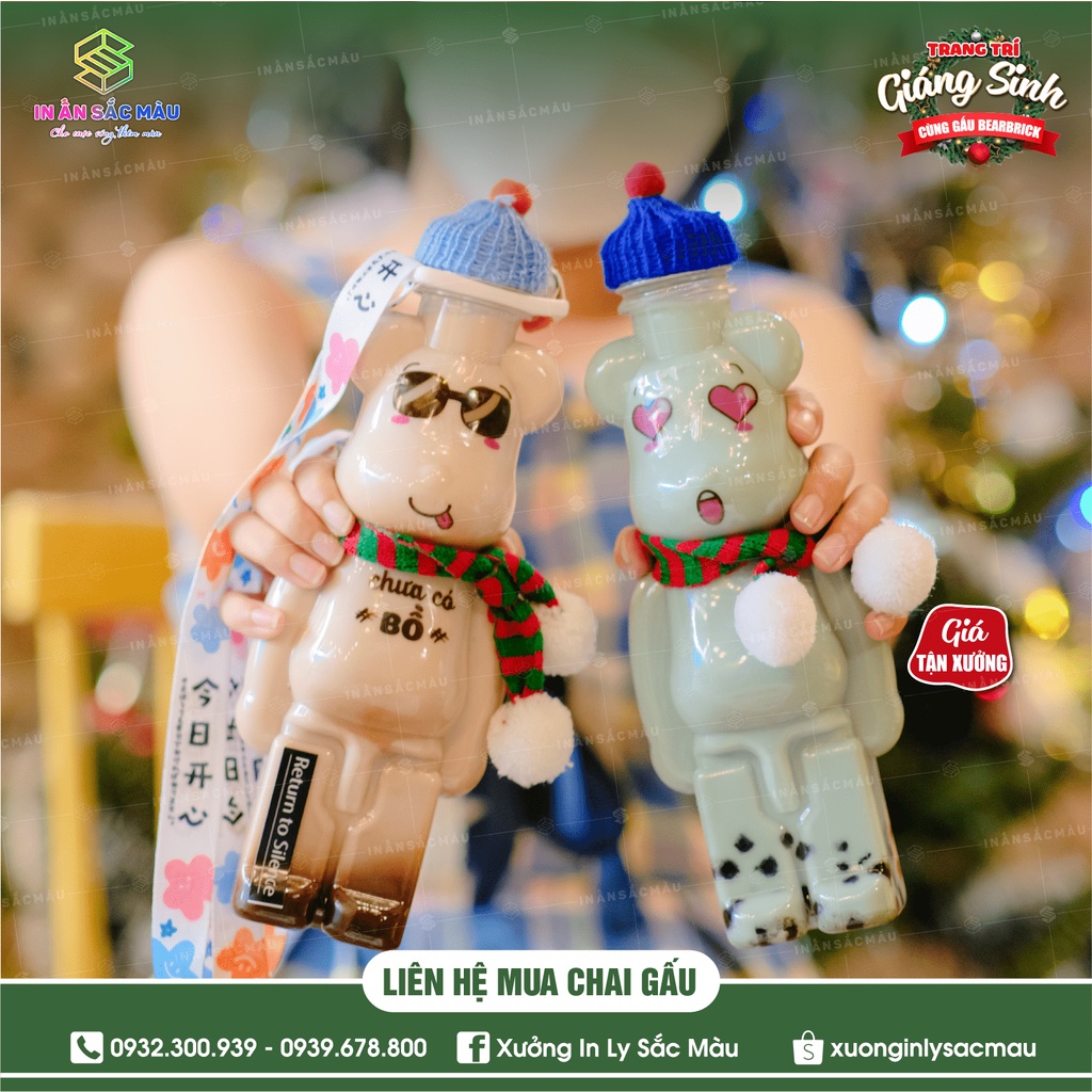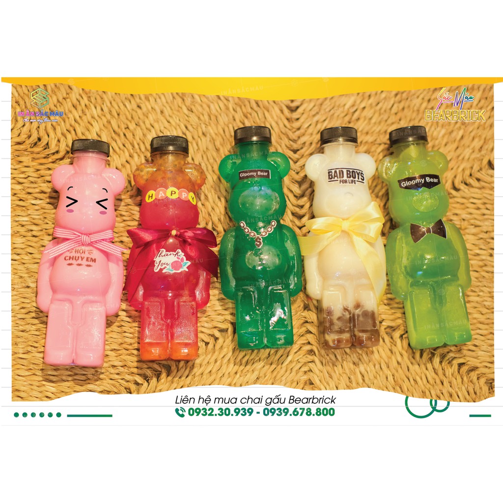 Nhà cửa & Đời sống > Bộ đồ bàn ăn > Bình nước & phụ kiện || HOT Combo 10 bình nhựa, chai nhựa hình Gấu bạo lực Bearbrick, chai gấu đựng kẹo, chai gấu trà sữaCòn hàng
