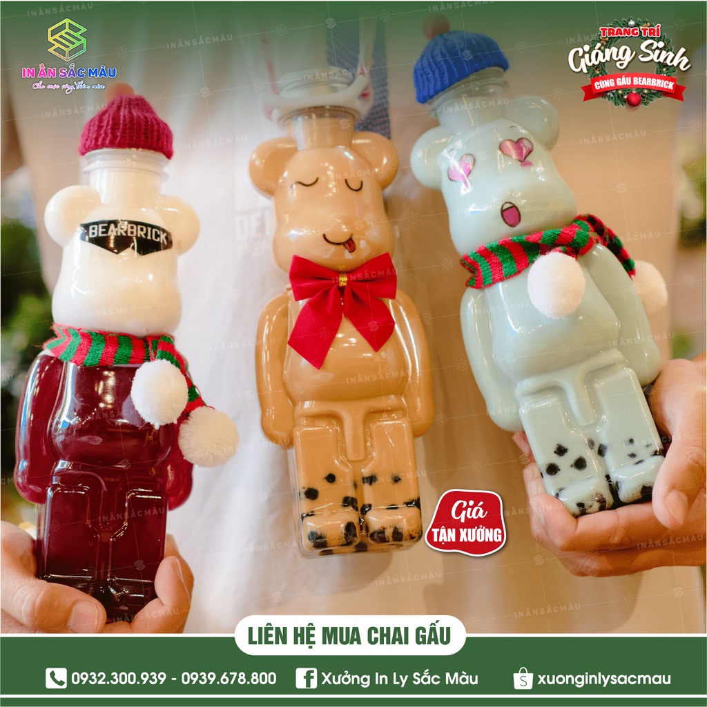 HOT Combo 10 bình nhựa, chai nhựa hình Gấu bạo lực Bearbrick, chai gấu đựng kẹo, chai gấu trà sữa