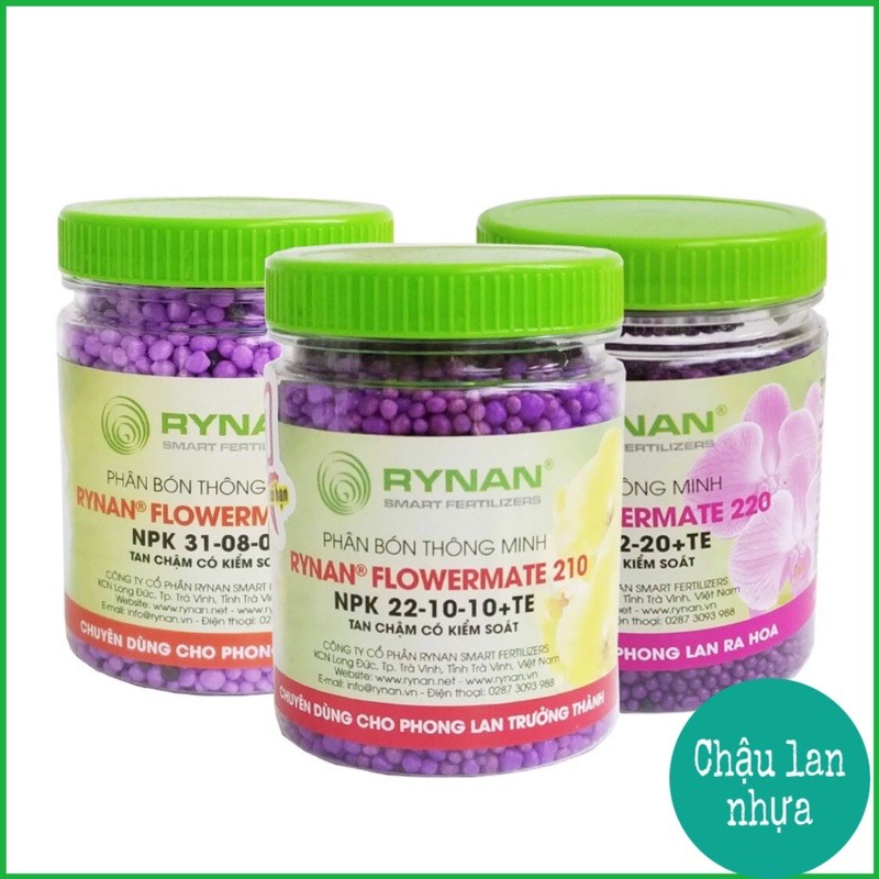 + Phân tan chậm rynan 210 dùng cho lan trưởng thành, phục hồi và chống suy cây sau giai đoạn ra hoa