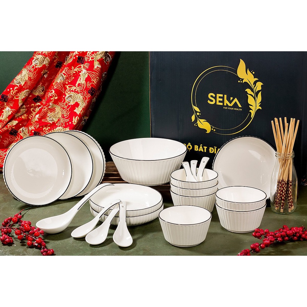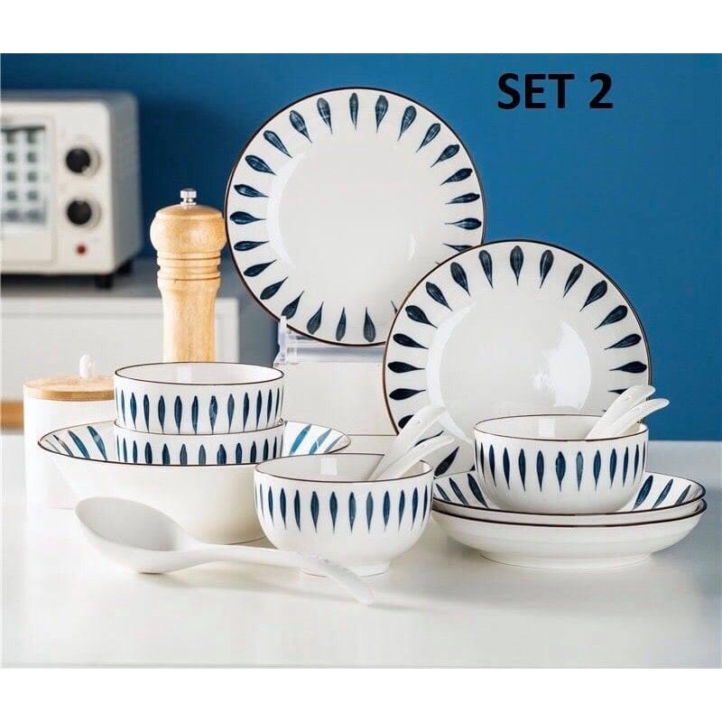 - Bộ 26 chi tiết gồm: 6 bát con + 6 đĩa + 1 bát canh + 6 đũa + 6 thìa + 1 thìa canh lớn