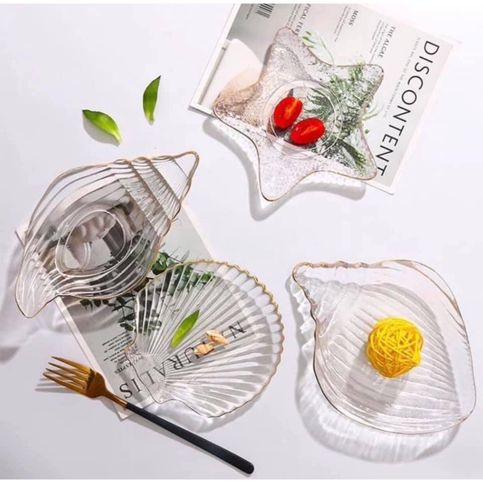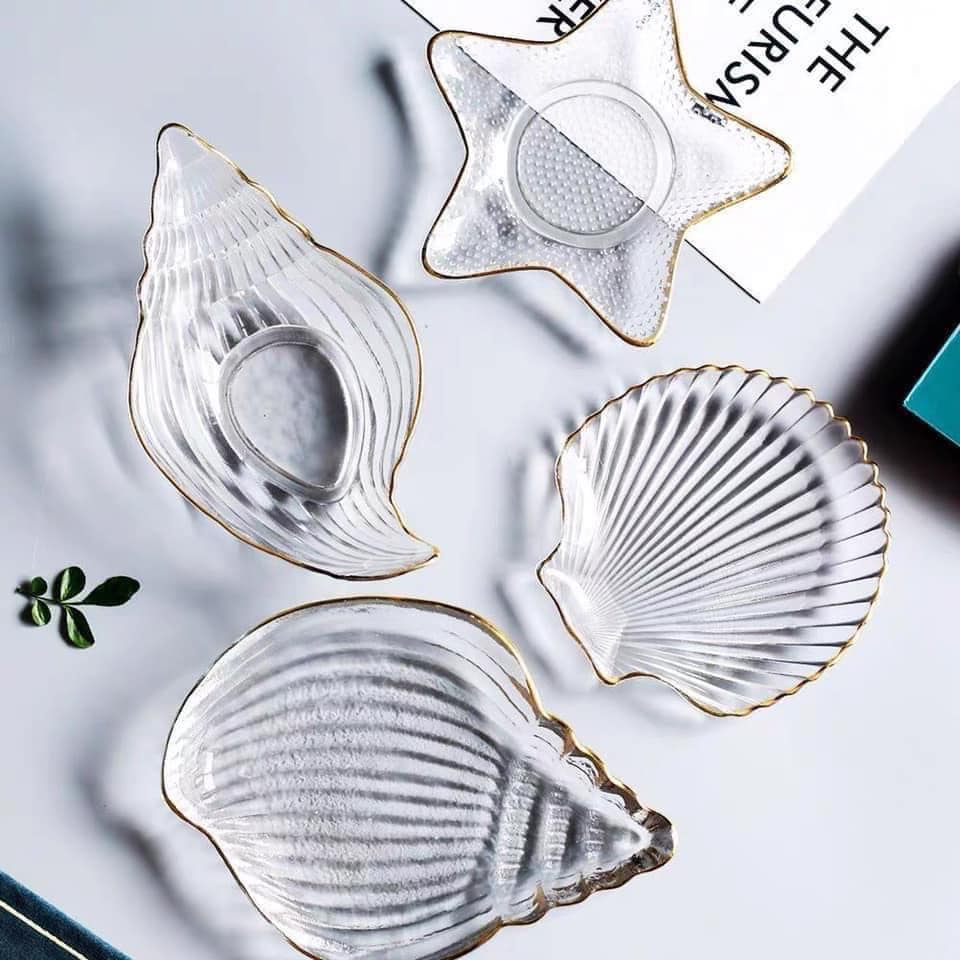 Set 4 đĩa thủy tinh LOẠI 1 siêu dày : Sao - Sò - Ốc - Hến viền vàng cực đẹp tinh tế mà lại cực độc lạ 😍