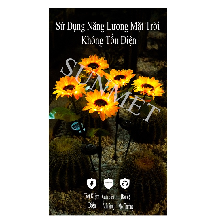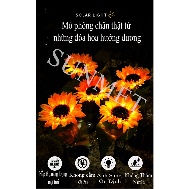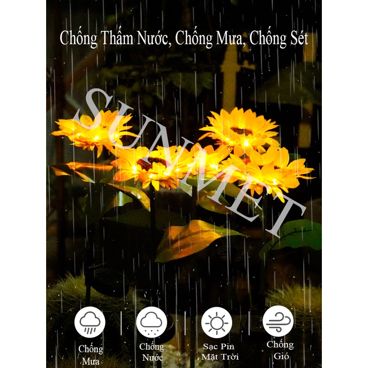 【HOT 】Đèn LED Năng Lượng Mặt Trời Hình Hoa Hướng Dương Chống Thấm Nước Trang Trí Sân Vườn, Công Viên, Chậu Hoa-SUNMET
