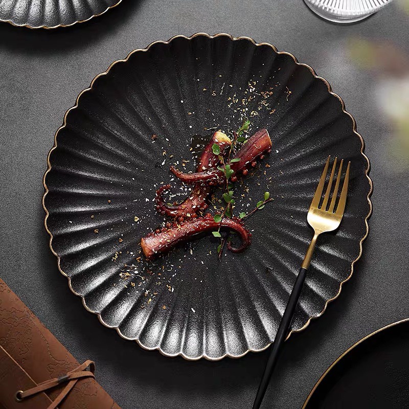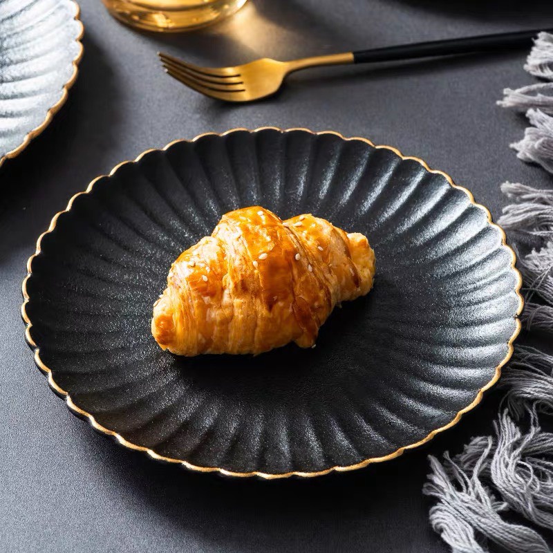 (HOT) Đĩa hoa cúc viền vàng men nhám chống xước sang trọng p/c Bắc Âu - Dĩa sứ nhà hàng cao cấp không chì