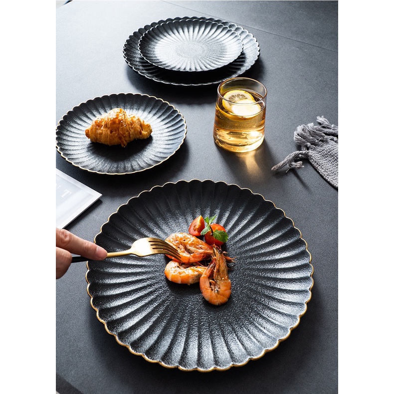 Nhà cửa & Đời sống > Bộ đồ bàn ăn > Dĩa || (HOT) Đĩa hoa cúc viền vàng men nhám chống xước sang trọng p/c Bắc Âu - Dĩa sứ nhà hàng cao cấp không chìCòn hàng