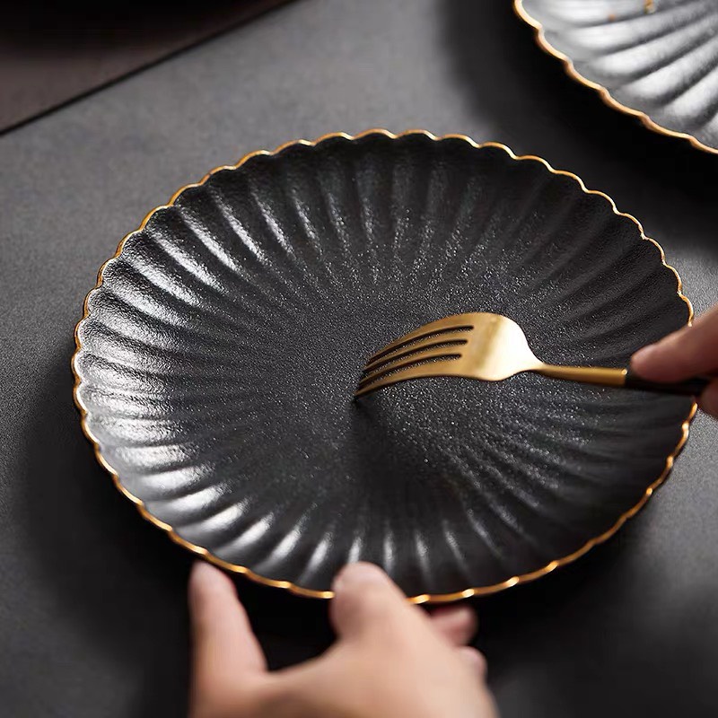 Giới thiệu (HOT) Đĩa hoa cúc viền vàng men nhám chống xước sang trọng p/c Bắc Âu - Dĩa sứ nhà hàng cao cấp không chì