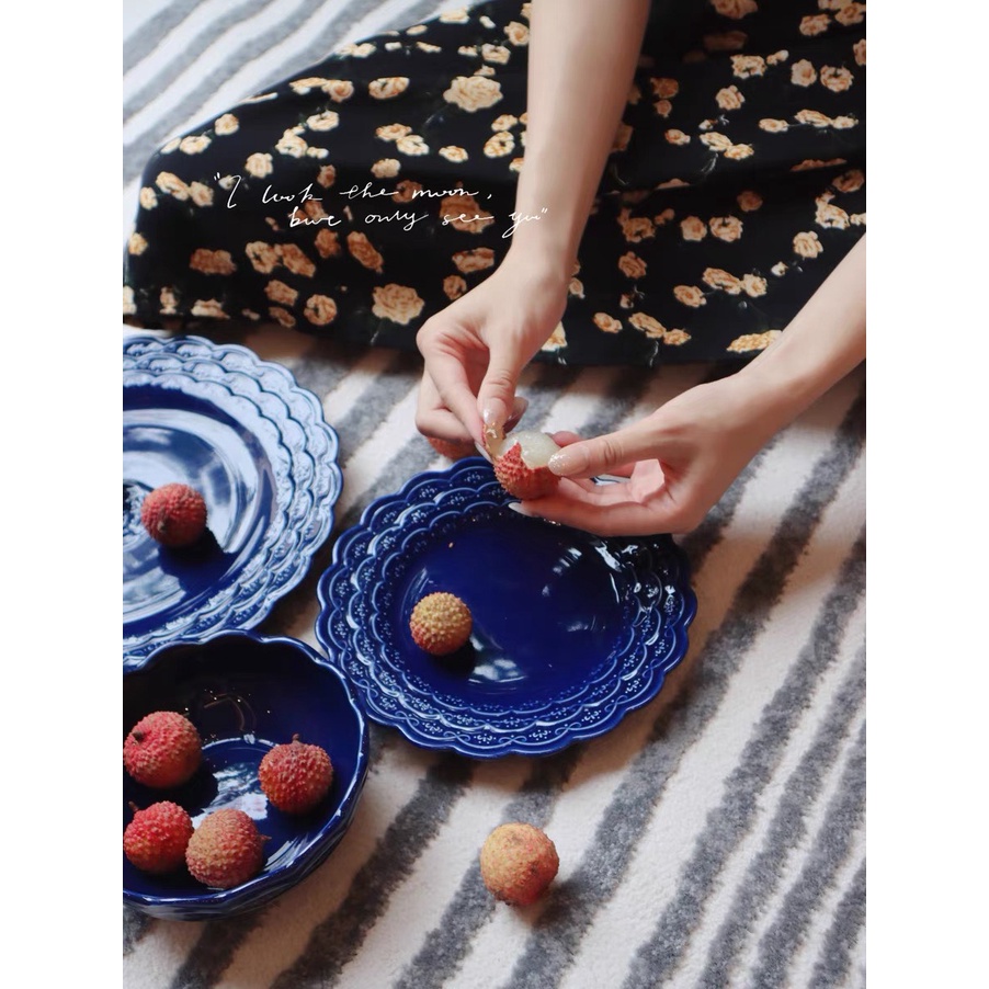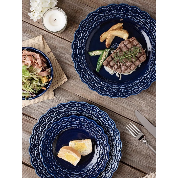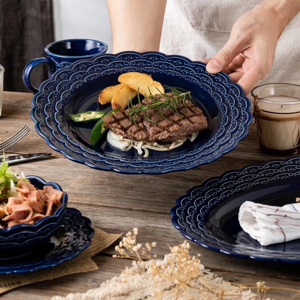 Nhà cửa & Đời sống > Bộ đồ bàn ăn > Dĩa || (HOT) Đĩa sứ vân hoa cúc xanh Hoàng gia cao cấp cực độc, đĩa nhà hàng sang trọng, đẳng cấp phong cách Bắc ÂuCòn hàng